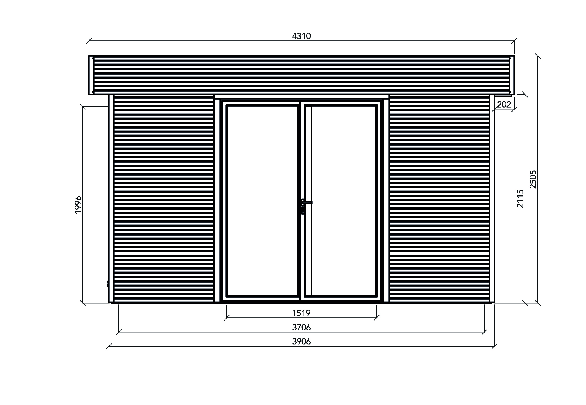 Dimensions au sol: 3,906 x 3,008 m | Surface au sol: 11,75 m² | Porte en aluminium (RAL 7016 - 1,66 x 2,065 m) avec double vitrage | Profilés modernes avec languettes et rainures en bois d’épicéa | Imprégnation classe III | Poignée de porte (couleur titane) et serrure à cylindre (trois points) | Toiture en profils de couverture métallique nervuré (RAL 7016) | Gouttière zinc-magnésium avec conduits d’évacuation | Bande d'isolation